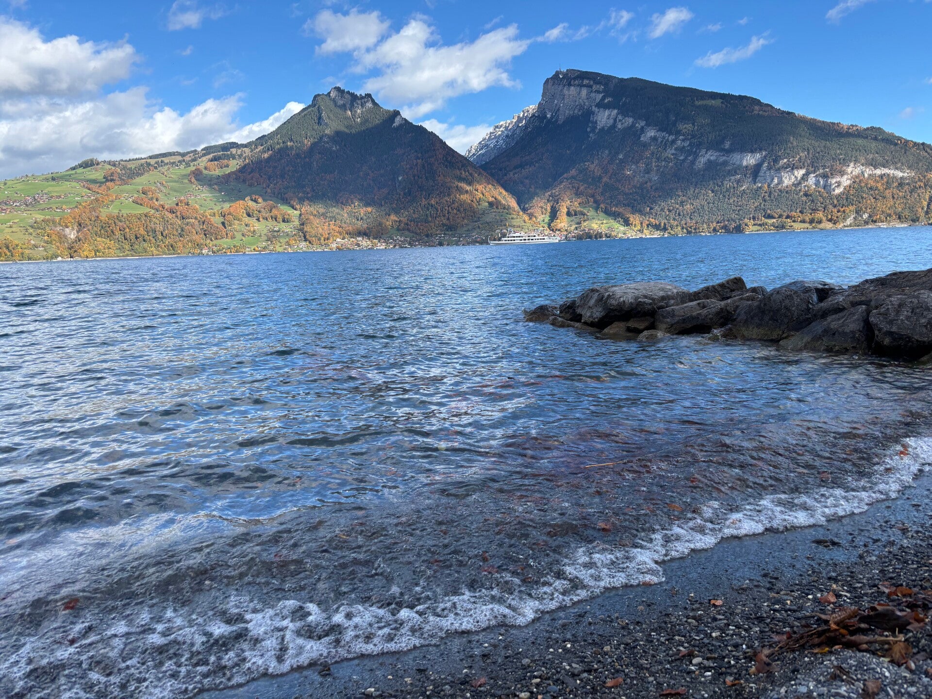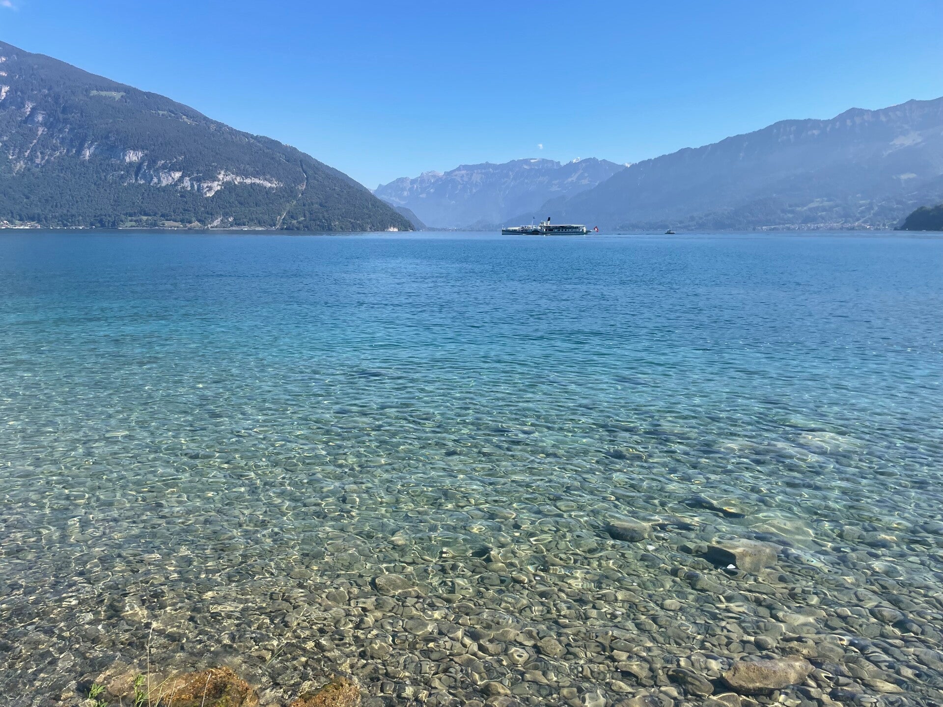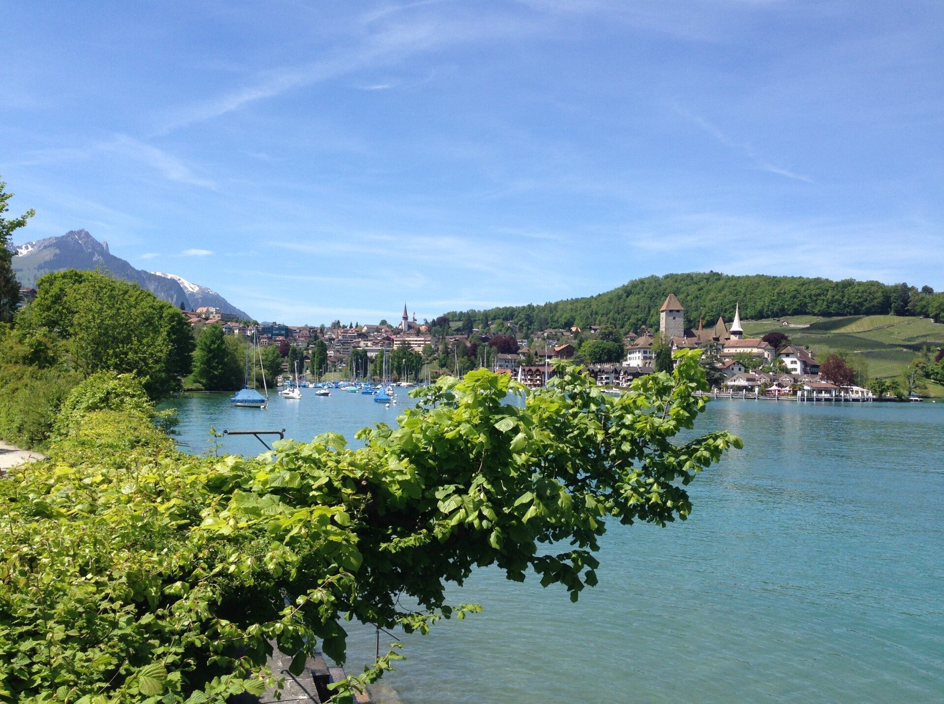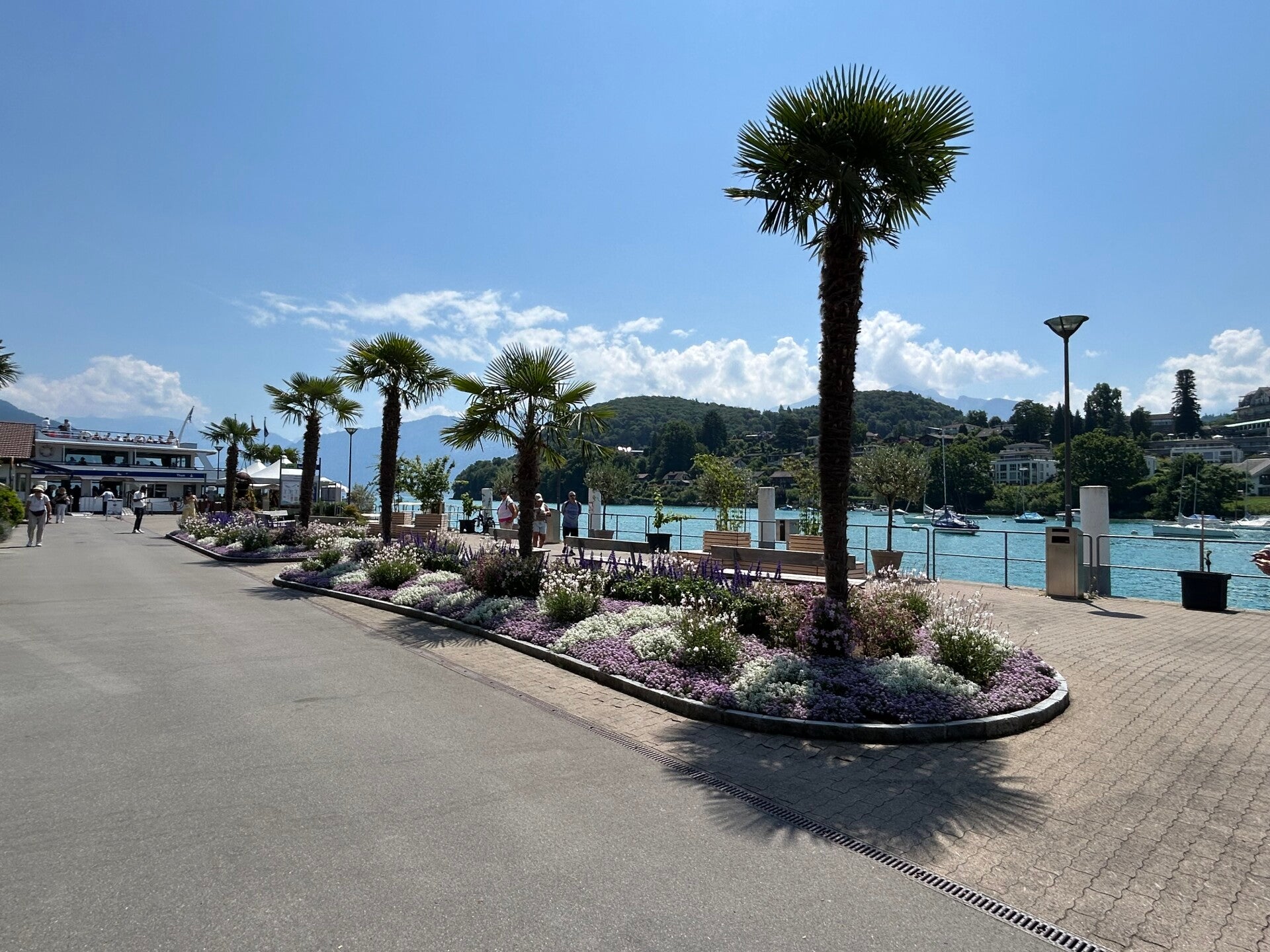 Mit Blick auf die Berner Alpen dem Seeufer entlang: Schadaupark, Strandbad, Bonstettenpark... es gibt viel zu sehen. Wenn möglich Ferienzeit und Sonntage meiden.